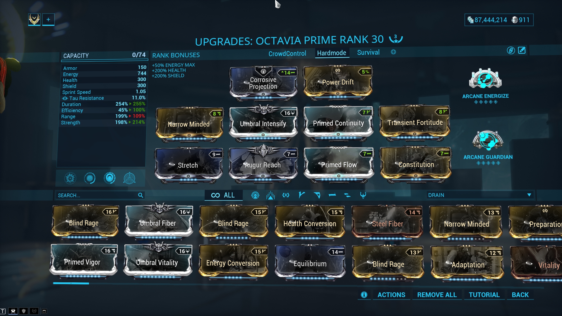 The Hardmode build focuses on dealing as much damage as possible on a short range. The perfect build for Steel Path or Arbitration. Since enemies will die slower on these difficulties, less energy orbs will drop and therefore the Ability Efficiency is higher to compensate this.