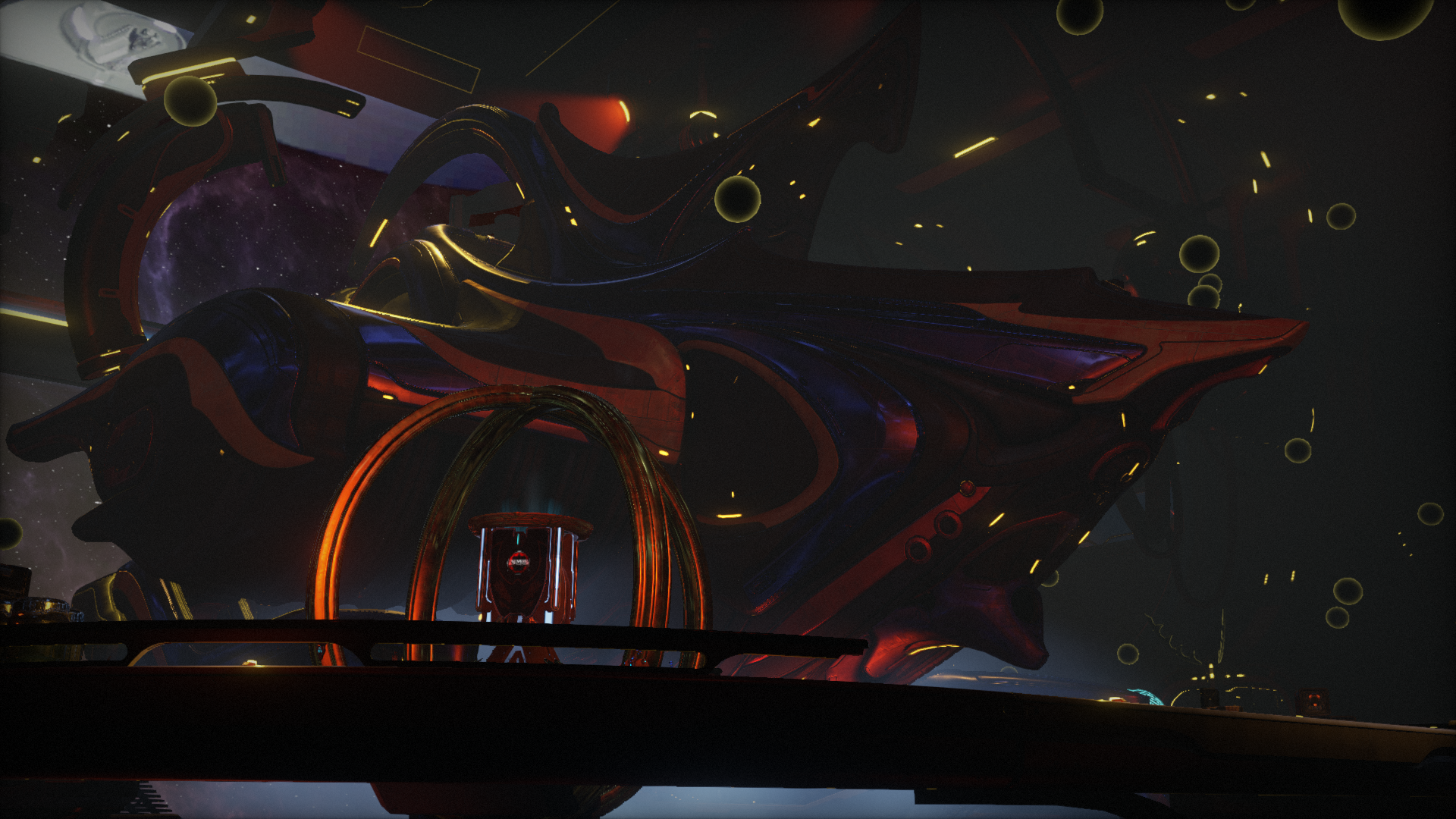 Railjacks are large Orokin-era interceptor spacecraft used by the Tenno. These formidable spacecraft feature a plethora of weaponry and defensive systems that allow them to face even large capital ships head-on in direct combat, as well as a "Void engine" propulsion system that allows them to travel independently of the Solar Rail network. Cephalon Cy serves as the Railjack's navigator and executive officer.