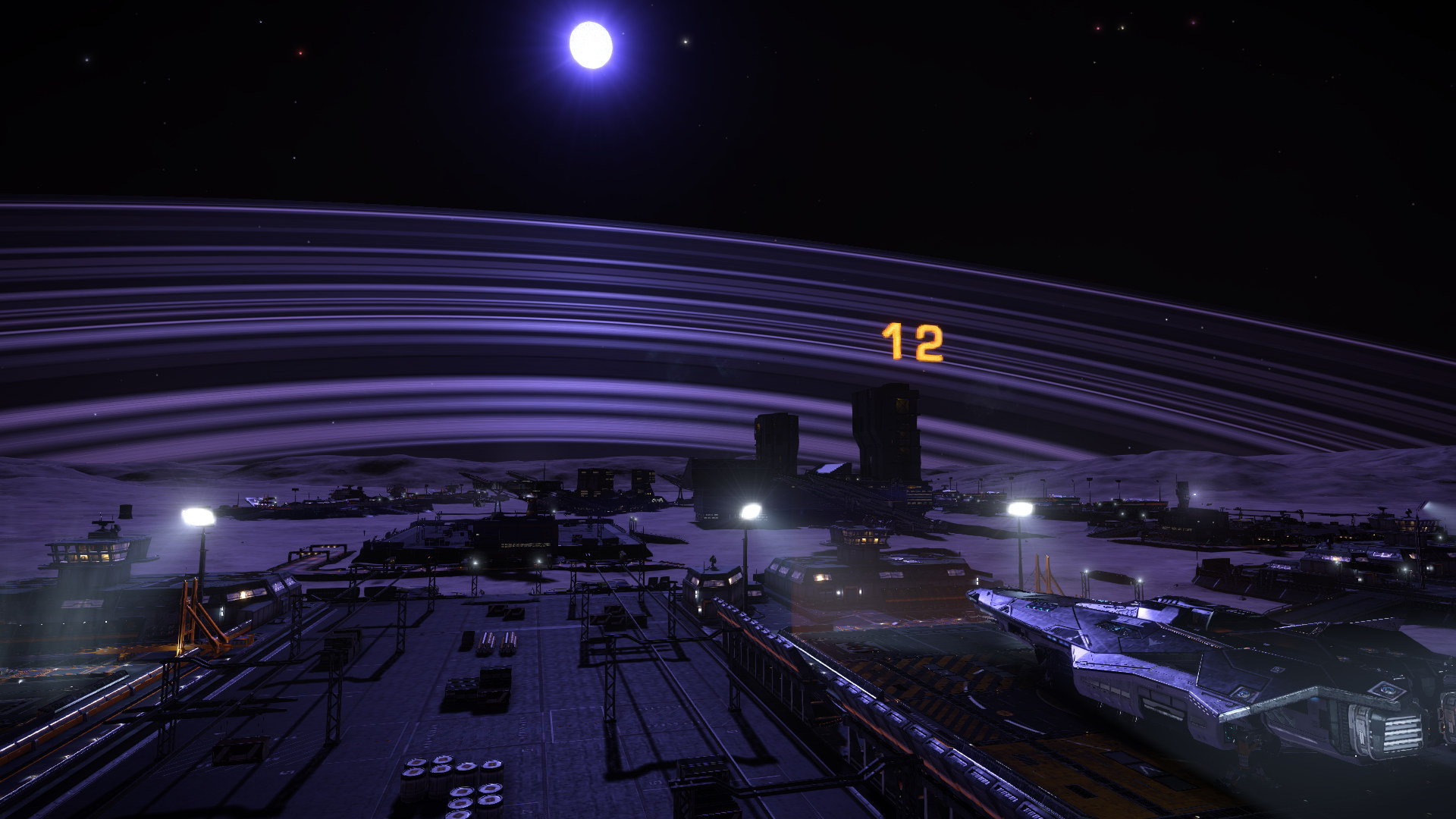On huge planet in white giant sun light. This planet gravity is 4G and this means that you can easiy die when docking there. Trust down is not recommended to push at all.